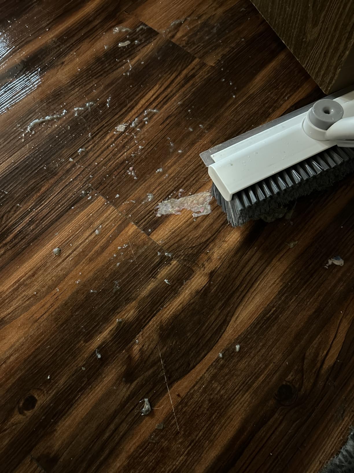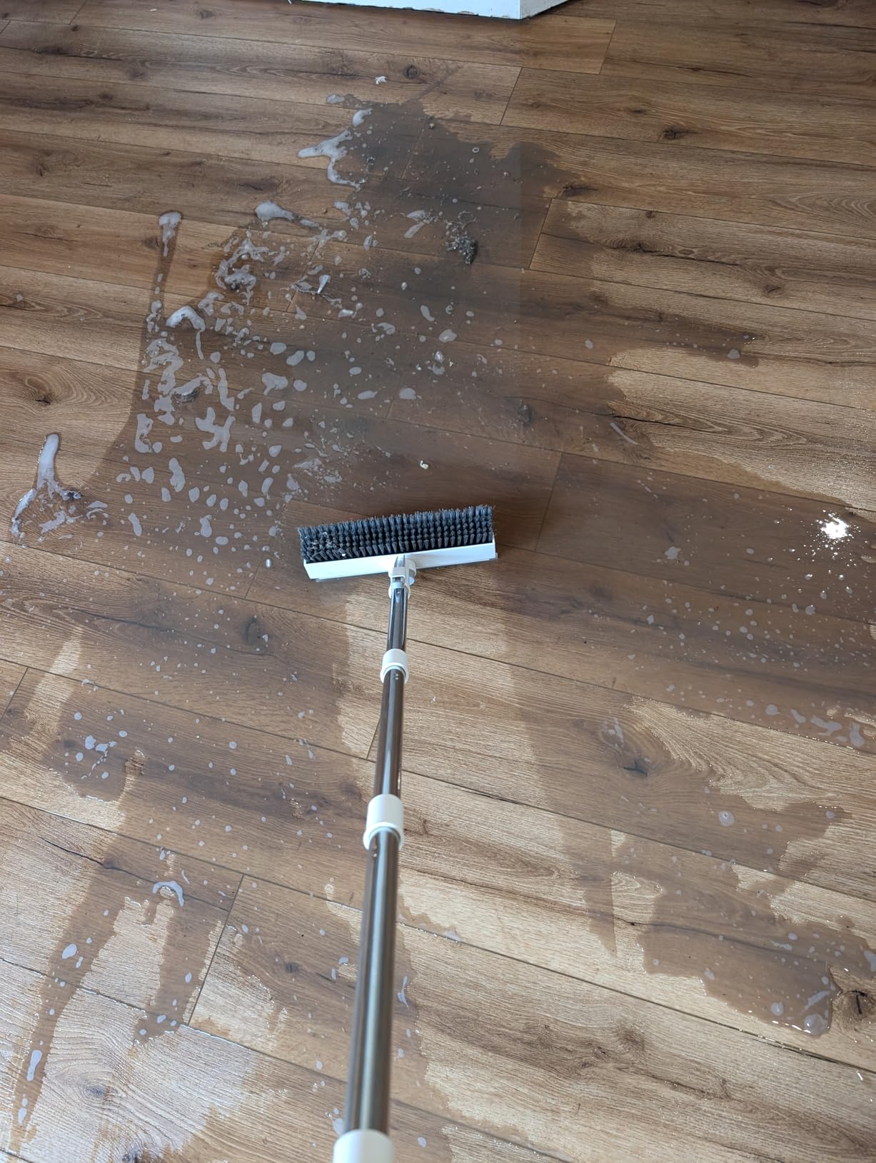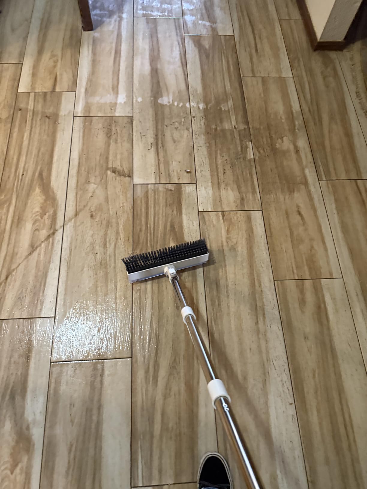 Yes! It works for both dry sweeping to remove debris and wet scrubbing with cleaning solutions.